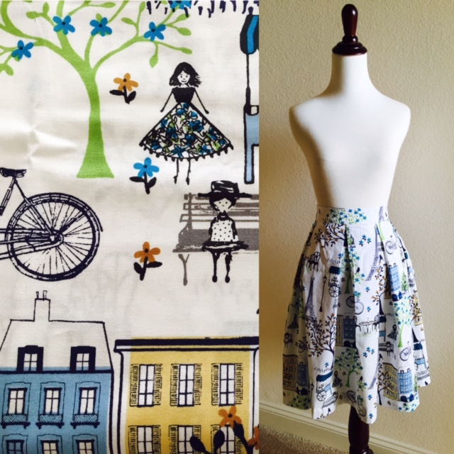 Pleated Skirt w/ Whimsical Bike Print