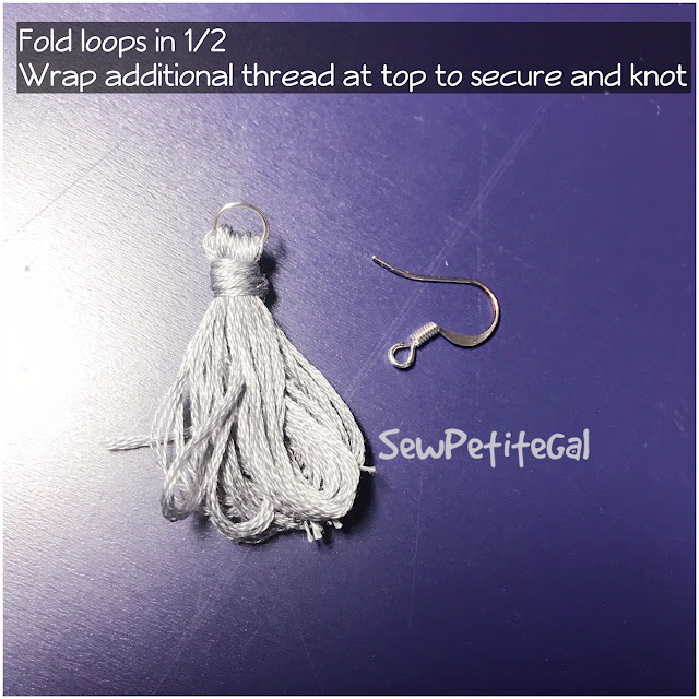 I decided to see what I could dig up from my giant stash of DIY supplies. Earring hooks and jump rings were pretty easy to find, but I wound up having to visit Joann's to find embroidery thread in the colors I wanted. I bought a BUNCH, but ultimately wanted to go with a more neutral, understated look and chose a medium gray color.